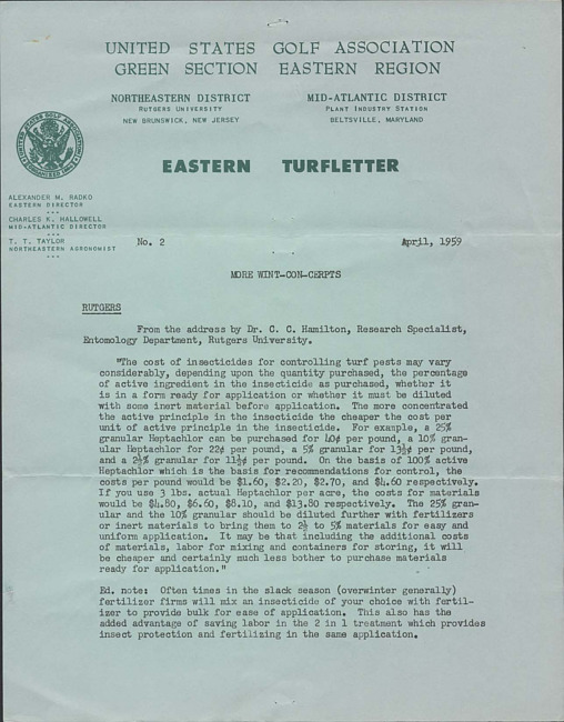 P.O. Box 708, Far Hills, N.J. 07931 ; Web: https://www.usga.org ; Email: greensection@usga.org