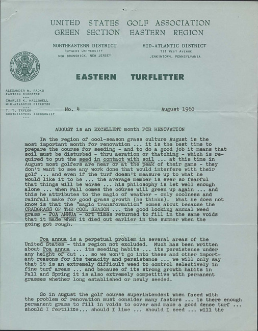 P.O. Box 708, Far Hills, N.J. 07931 ; Web: https://www.usga.org ; Email: greensection@usga.org