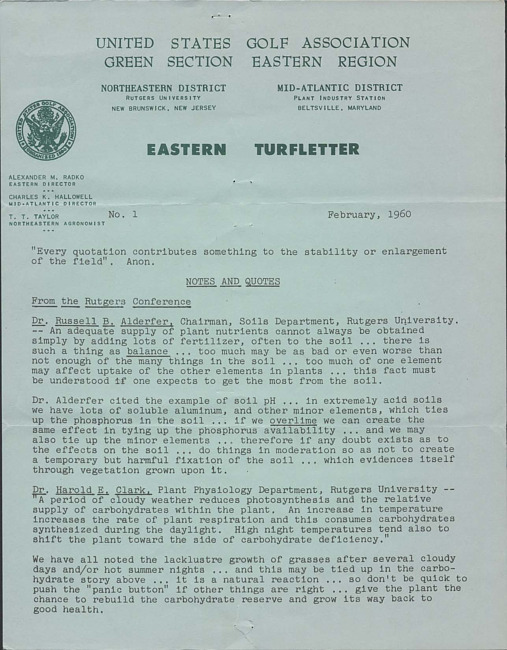 P.O. Box 708, Far Hills, N.J. 07931 ; Web: https://www.usga.org ; Email: greensection@usga.org