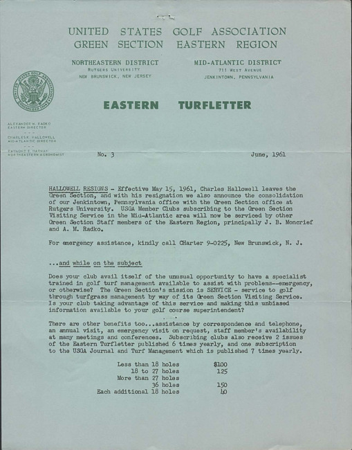 P.O. Box 708, Far Hills, N.J. 07931 ; Web: https://www.usga.org ; Email: greensection@usga.org