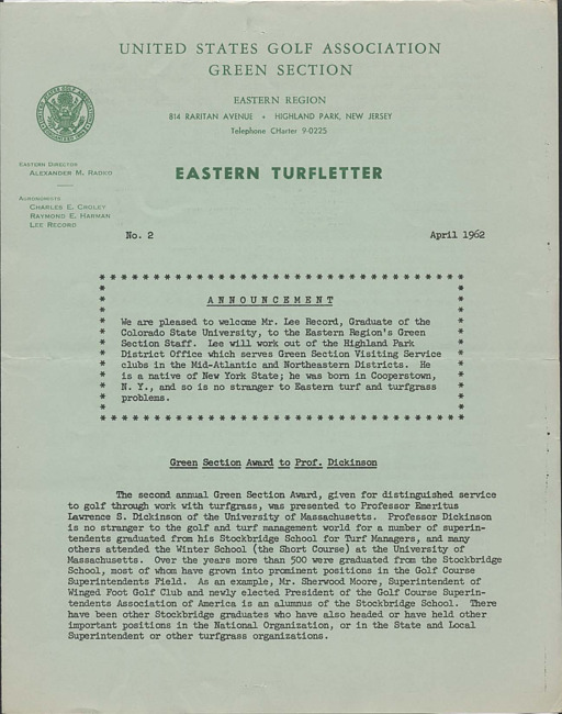 P.O. Box 708, Far Hills, N.J. 07931 ; Web: https://www.usga.org ; Email: greensection@usga.org