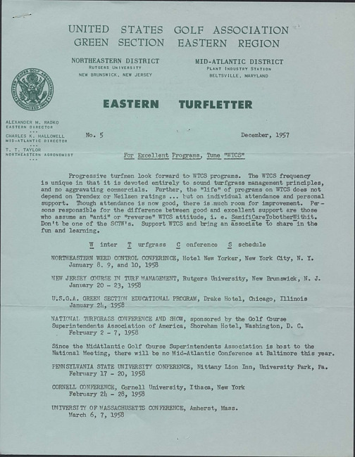 P.O. Box 708, Far Hills, N.J. 07931 ; Web: https://www.usga.org ; Email: greensection@usga.org