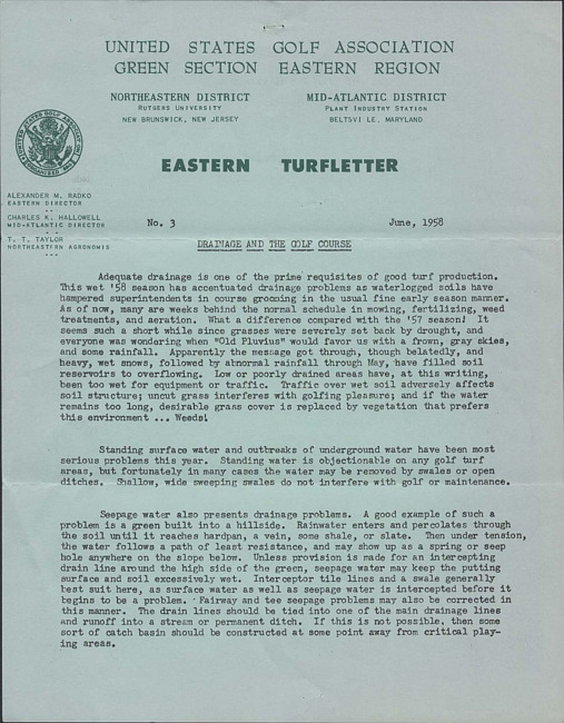 P.O. Box 708, Far Hills, N.J. 07931 ; Web: https://www.usga.org ; Email: greensection@usga.org
