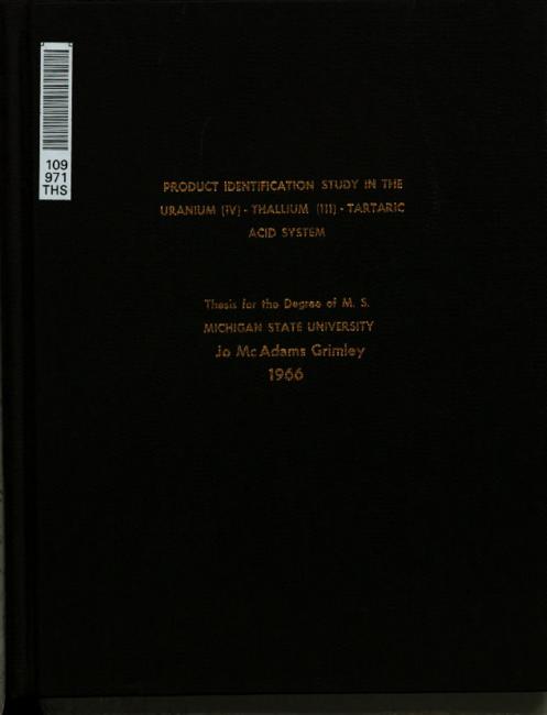 Product identification study in the uranium(IV)-thallium(III)-tartaric acid system