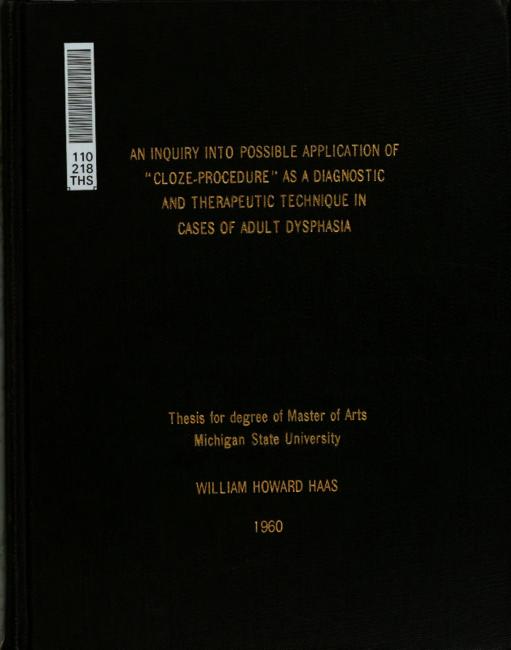 An inquiry into possible application of "cloze procedure" as a diagnostic and theraputic technique in cases of adult dyphasia