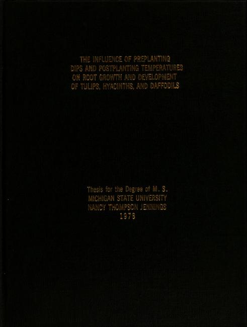 The influence of preplanting dips and postplanting temperatures on root growth and development of tulips, hyacinths, and daffodils
