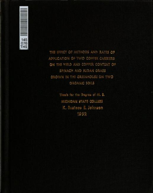 The effect of methods and rates of application of two copper carriers on the yield and copper content of spinach and sudan grass grown in the greenhouse on two organic soils