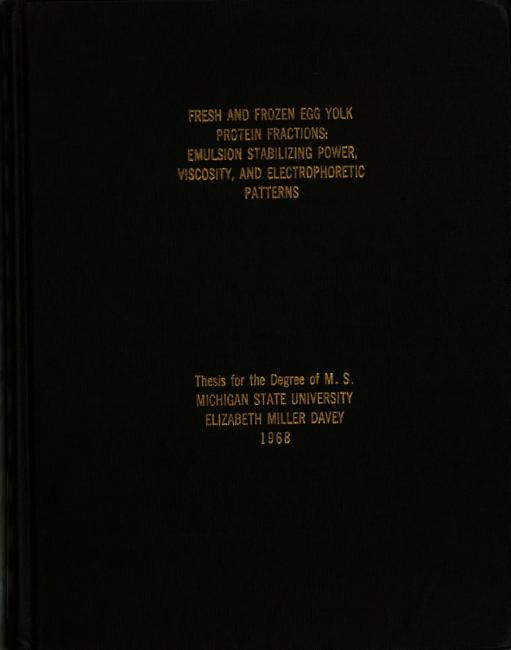 Fresh and frozen egg yolk protein fractions : emulsion stabilizing power, viscosity, and electrophoretic patterns