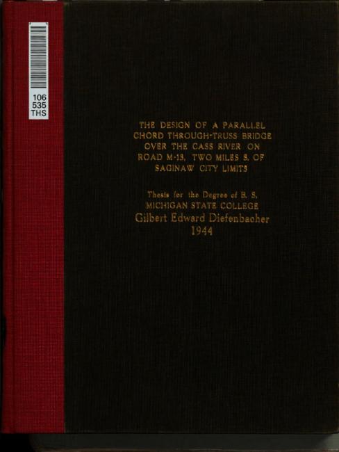 The design of a parallel chord through-truss bridge over the Cass river on road M-13, two miles S. of Saginaw city limits