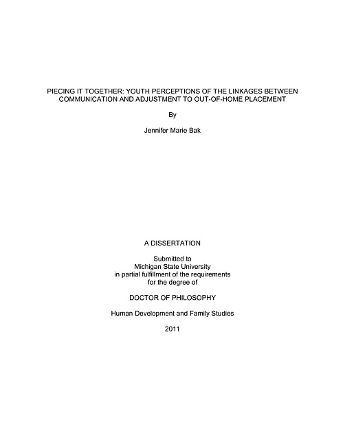 Piecing it together : youth perceptions of the linkages between communication and adjustment to out-of-home placement