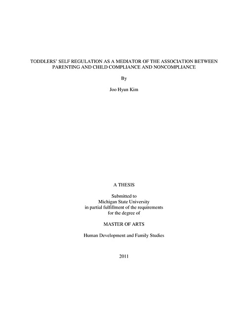 Toddlers' self regulation as a mediator of the association between parenting and child compliance and noncompliance