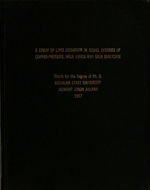 A study of lipid oxidation in model systems of copper-poteins, milk lipids and milkk dialyzate