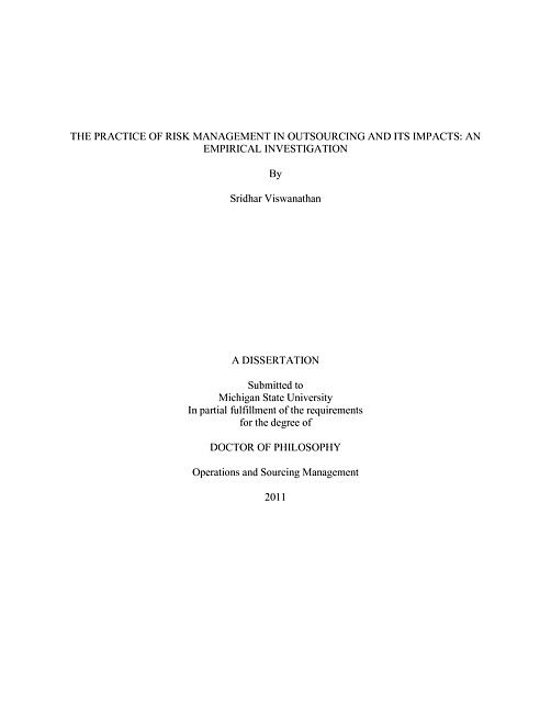The practice of risk management in outsourcing and its impacts : an empirical investigation