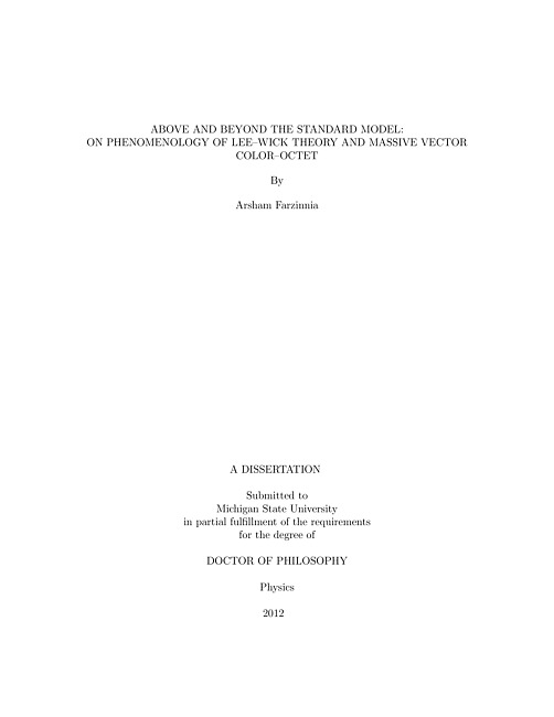 Above and beyond the standard model : on phenomenology of Lee-Wick theory and massive vector color-octet
