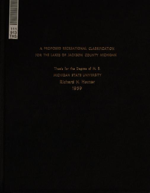 A proposed recreational classification for the lakes of Jackson County, Michigan