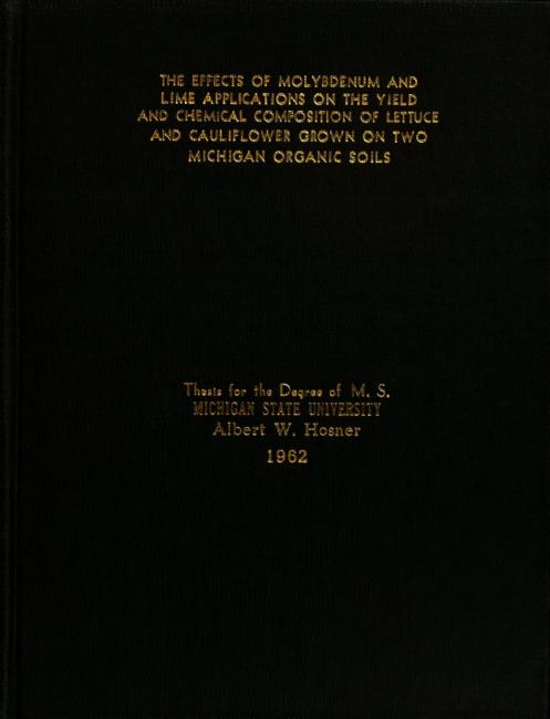 The effect of molybdenum and lime applications on the yield and chemical composition of lettuce and cauliflower grown on two Michigan organic soils