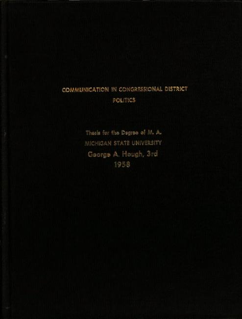 Communication in congressional district politics : a study of the Third Congressional District of Wisconsin