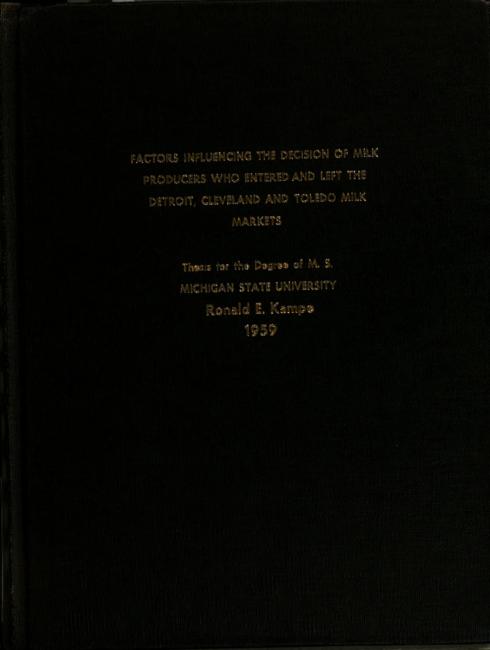 Factors influencing the decision of milk producers who entered and left the Detroit, Cleveland, and Toledo milk markets