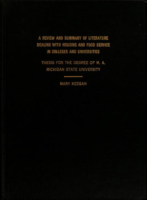 A review and summary of literature dealing with housing and food service in colleges and universities