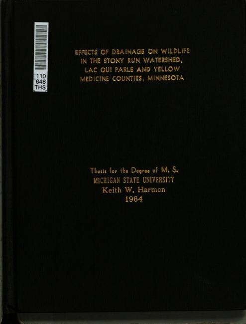 Effects of drainage on wildlife in the Stony Run Watershed, Lac Qui Parle and Yellow Medicine Counties, Minnesota