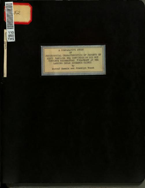 A comparative study of psychosocial characteristics of parents of sixty families who continued or did not continue recommended treatment at the Lansing Child Guidance Clinic