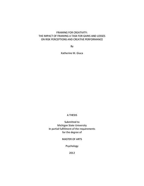 Framing for creativity : the impact of framing a task for gains and losses on risk perceptions and creative performance