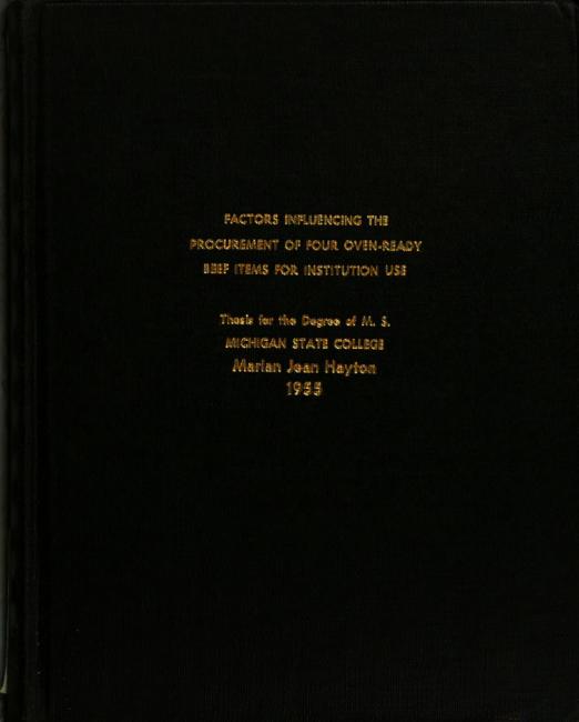 Factors influencing the procurement of four oven-ready beef items for institution use