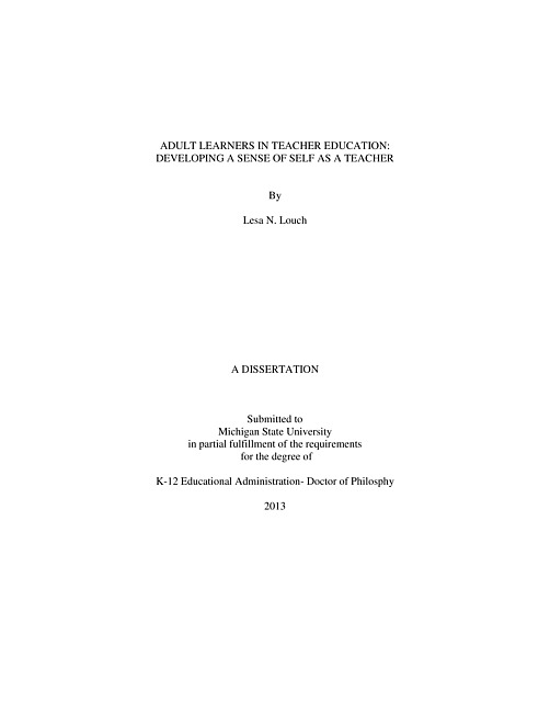 Adult learners in teacher education : developing a sense of self as a teacher