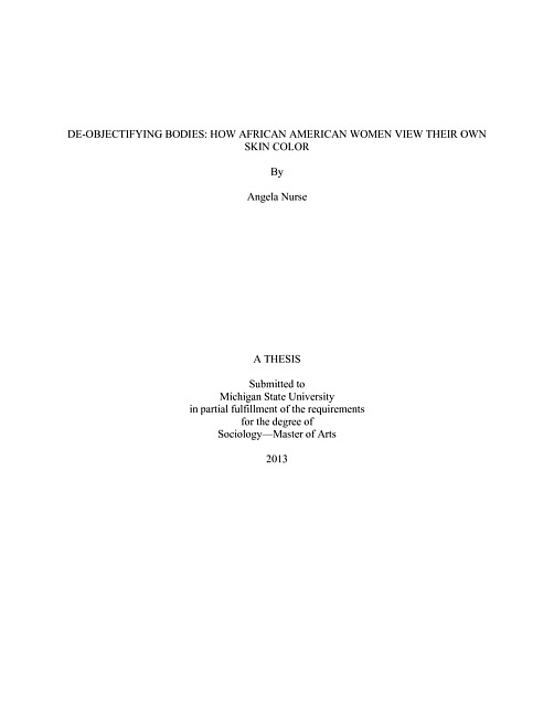 "This paper explores how the social forces that impact African American perceptions of beauty. Rather than focusing on psychical features this paper explores the various social-structural forces that impact a sense of attractiveness. I found that age and a sense of community, not skin color, were the significant predictors of Black women's feelings of attractive. This finding contradicts much conventional knowledge that women's assessment of their own beauty is determined by the existence of particular physical features. The limitations of this study are the exclusion of other physical features, such as weight, body shape or hair texture that may also impact how attractive black women view that skin shade. Regardless, this paper points to a wide range of variables that shape how women assess their own beauty."--Abstract.