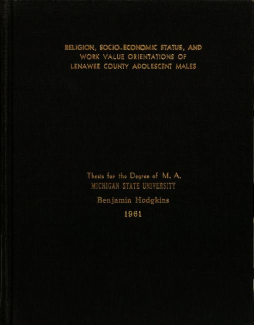 Religion, socio-economic status, and work value orientations of Lenawee County adolescent males