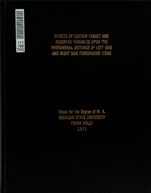 Effects of certain target and observer variables upon the phenomenal distance of left side and right side foreground items