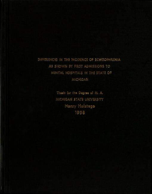 Differences in the incidence of schizophrenia as shown by first admissions to mental hospitals in the state of Michigan