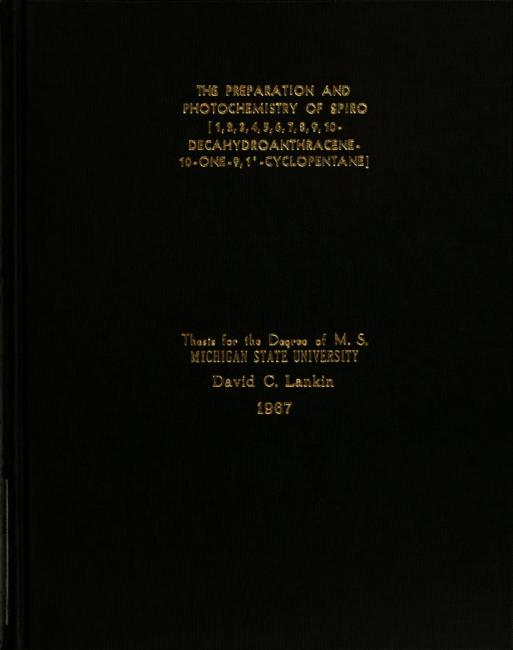 The preparation and photochemistry of spiro [1,2,3,4,5,6,7,8,9,10-decahydroanthracence 10-one-9,1'-cyclopentane]