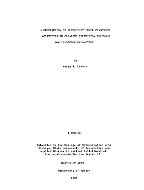 A description of elementary level classroom activities in creating television programs for in-studio production