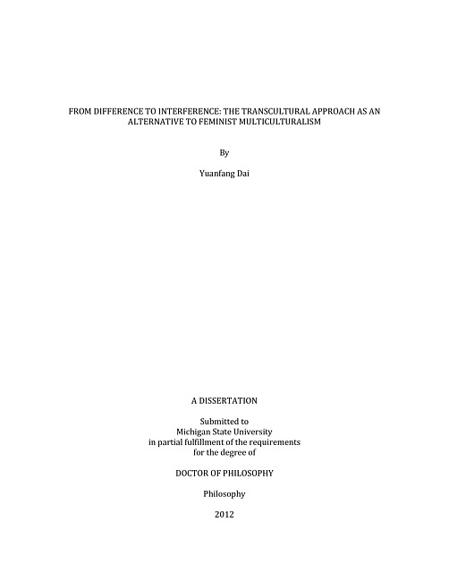 From difference to interference : the transcultural approach as an alternative to feminist multiculturalism