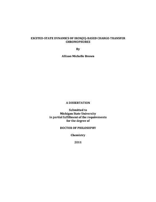 Iron(II) photophysics is a field of research that has been, and continues to be, extensively studied by both calculation and experiment. The reactivity and photophysical properties of these complexes are very well understood, providing both a fundamental understanding of the science as well as a foundation for applying that understanding. This dissertation discusses the viability iron(II)-based complexes may have in one particular application: dye-sensitized solar cells. The recent and explosive interest in ruthenium(II) complexes for the application in solar cells begs the question of whether the isoelectronic and 100-fold more abundant substitution can be made. A concurrent decrease in price and increase in scalability would result from the successful replacement of ruthenium with iron. However, intrinsic differences in ligand field splitting between first and second row transition metals produce low-lying electronic states that short circuit the iron-based cells. Overcoming these deactivation pathways is the purpose of this research and will be the focus and end goal for the discussions herein.