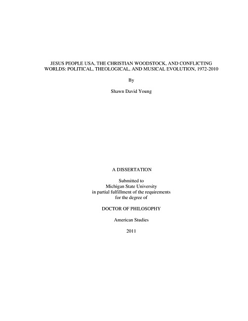 Jesus People USA, the Christian Woodstock, and conflicting worlds : political, theological, and musical evolution, 1972-2010