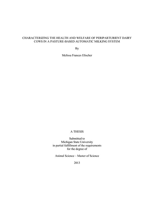 Characterizing the health and welfare of periparturient dairy cows in a pasture-based automatic milking system