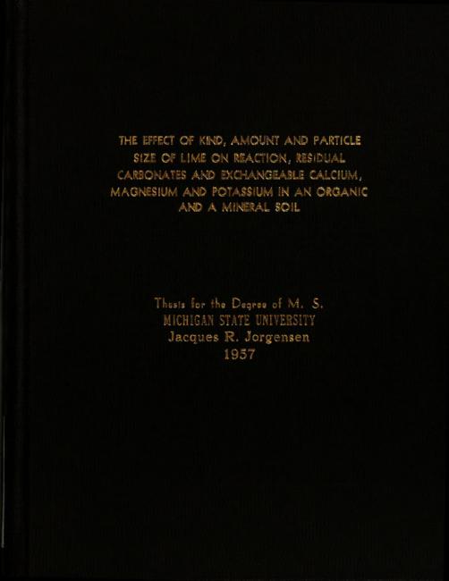 The effect of kind, amount and particle size of lime on reaction, residual carbonates and exchangeable calcium, magnesium and potassium in an organic and mineral soil