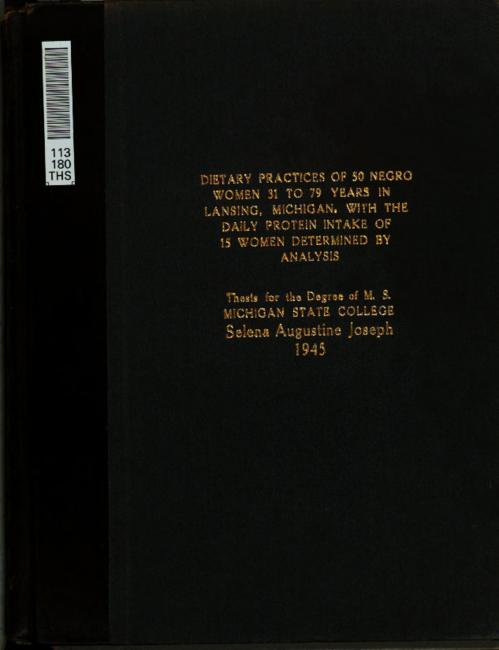 Dietary practices of 50 negro women 31 to 79 years in Lansing, Michigan, with the daily protein intake of 15 women determined by analysis