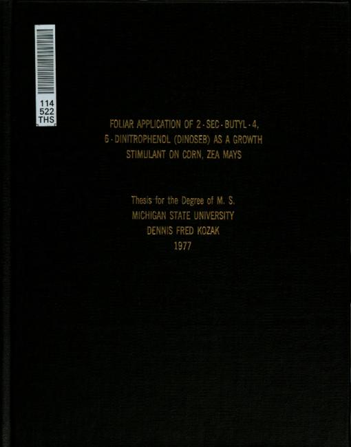 Foliar application of 2-Sec-Butyl-4, 6-Dinitrophenol (Dinoseb) as a growth stimulant on corn, Zea mays