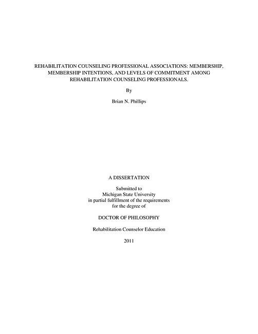 Rehabilitation counseling professional associations : membership, membership intentions, and levels of commitment among rehabilitation counseling professionals
