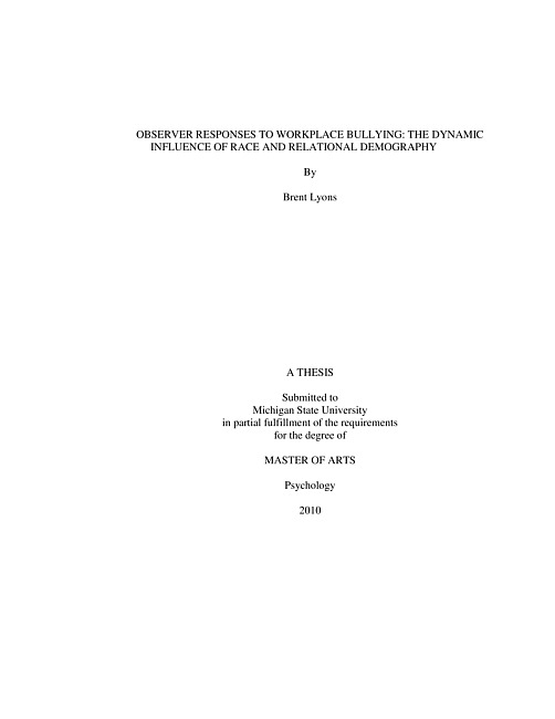 Observer responses to workplace bullying : the dynamic influence of race and relational demography