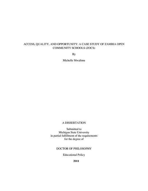 Access, quality, and opportunity : a case study of Zambia Open Community Schools (ZOCS)