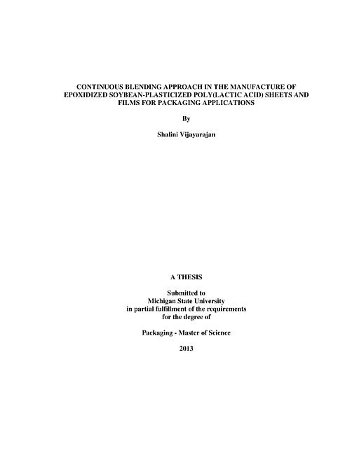 Continuous blending approach in the manufacture of epoxidized soybean-plasticized poly(lactic acid) sheets and films for packaging applications