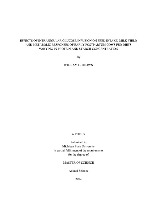 Effects of intrajugular glucose infusion on feed intake, milk yield and metabolic responses of early postpartum cows fed diets varying in protein and starch concentration