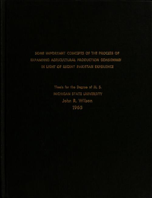 Some important concepts of the process of expanding agricultural production considered in light of recent Pakistan experience