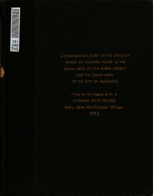 A comparative study of the defective speech of children found in the rural area of Van Buren county and the urban area of the city of Muskegon