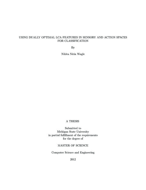 Using dually optimal LCA features in sensory and action spaces for classification