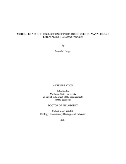 Models to aid in the selection of procedures to manage Lake Erie walleye (Sander vitreus)